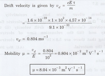 velocity (ii) the mobility and (iii) the relaxation time of electrons assuming