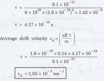 field of 0.14 V/m. Find (i) average drift velocity and (ii) mean collision