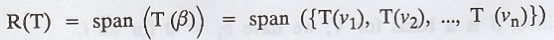 subset of W consisting of all images (under T) of vectors in V; that is, R(T) =