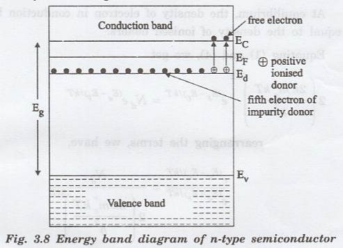 energy band diagram of n-type semiconductor is shown in figure 3.8. In n-type semiconductor,