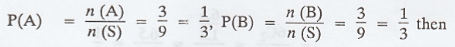 S = {1, 2, 3, 4, 5, 6}, A = {2, 4, 6}, B
