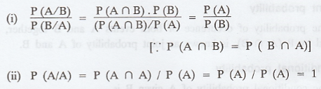 P (A/B) = P(A∩B)/P(B) if P(B) ≠ 0 and it