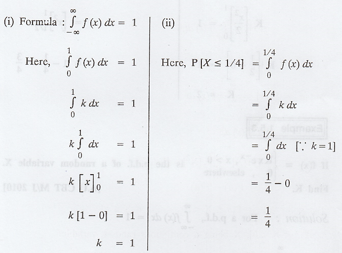 p.d.f. f(x) = k, 0 ≤ x ≤ 1. Determine the constant k. Find P [X ≤ 1/4]