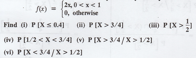 is f (x) = x/2 in 0 ≤ x ≤ 2, then find P(X > 1.5 / X > 1). [Ans. 7/12]