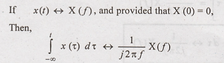 the integration of x(t) in time domain has the effect of dividing its Fourier