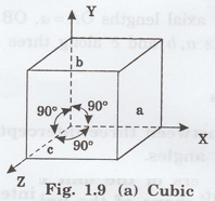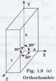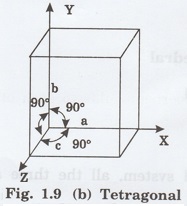 the unit cell are not equal but they are perpendicular to each other. (fig. 1.9