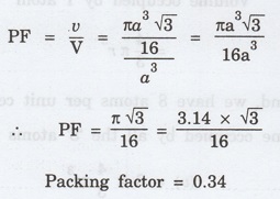 Packing factor = 0.34 = 0.34 x 100 %
