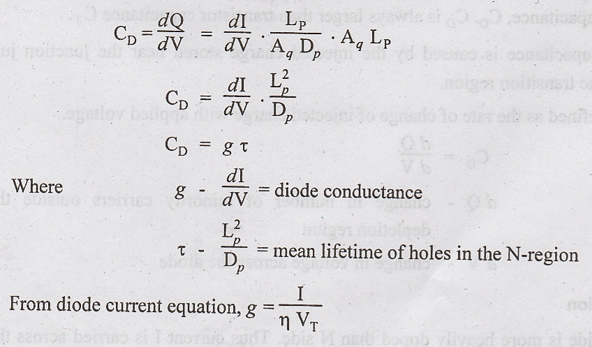 Electronic Devices and Circuits: Unit I: Semiconductor Devices : Tag: : Derivation, Applications | PN Diode - Diffusion Capacitance