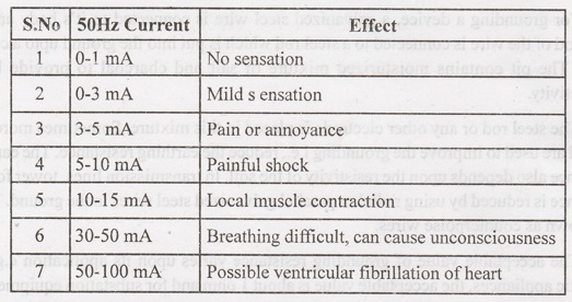 5.1 give typical effects of Electric shocks current on humans.