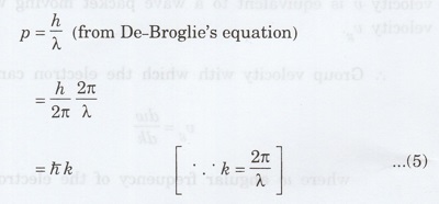 According to wave mechanics, a particle moving with a velocity v is equivalent to a wave packet moving with a group velocity vg