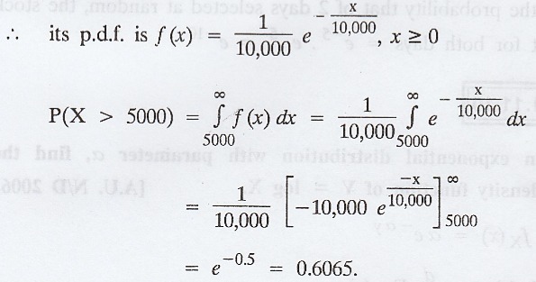selected at random, the stock is insufficient for both days = e-5 . e-5 = e-10