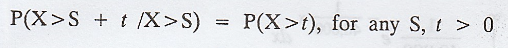 (i.e.,) If P(X > S + t / X > S) = P(X > t) then X follows an exponential distribution.