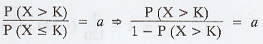 parameter λ, find the value of K there exists P(X > K) / P(X ≤ K) = a.
