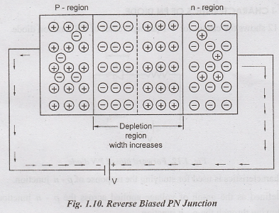Fig. 1.14 shows the reverse biased p- n diode. The reverse voltage across the