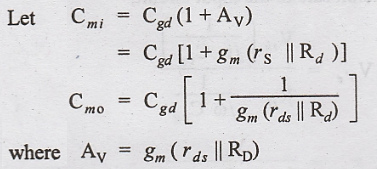 The input/output feedback capacitance Cgd is replaced by input/output shunting capacitance similar to BJT analysis.