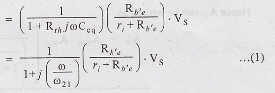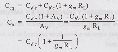 shows the high frequency equivalent circuit of CE amplifier. All the coupling