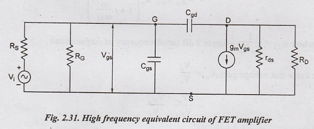 equivalent circuit of FET amplifier is shown in Fig.2.31. The capacitors Cgs