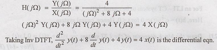 differential eqn relating the i/p & o/p of a CT s/m rep'd by