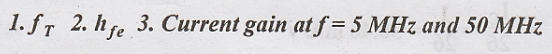 is 150 KHz. Calculate 1.fT 2. hfe 3. Current gain at f =