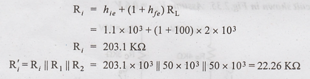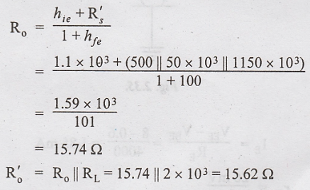 = 50 KΩ, RL = 2 KΩ, hfe = 100, hie = 1.1 KΩ