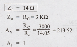 the input impedance, output impedance, voltage gain and current gain for the CB