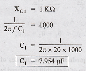 and 20 KHz. Calculate the value of input coupling capacitor C1 if