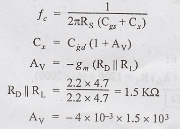the FET amplifier, the component values are RD= 2.2 KΩ RL