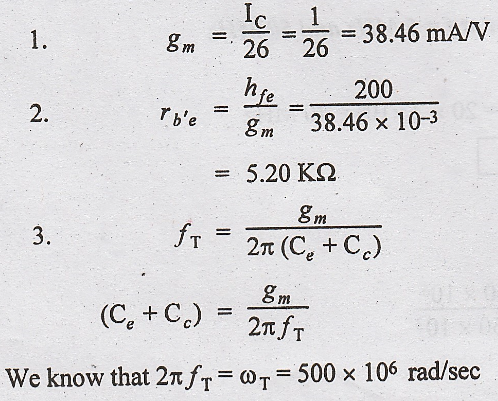 rad/sec. Calculate gm, rb'e, Ce and ωβ.