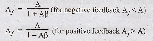 Explain the concept of negative feedback in amplifier. Derive the expression
