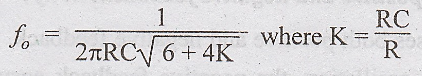 Write the expresion for frequency of oscillatioon in RC-phase shift oscillator.
