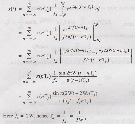 taken at the rate of 2W or higher, x(t) is completely represented by its