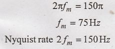 signal x(t) = sin C (150 πt) is sampled at a range of (a) 100 Hz (b) 200 Hz (c)