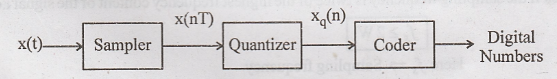 sampler is applied to a quantize. It converts x(nT) into discrete time,
