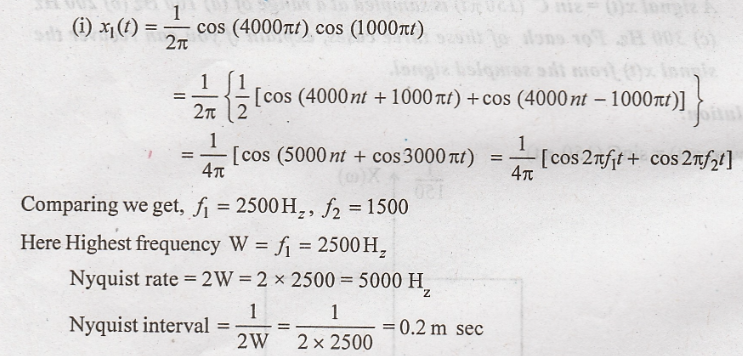 the Nyquist sampling rate and Nyquist sampling interval for following signals: