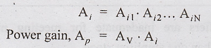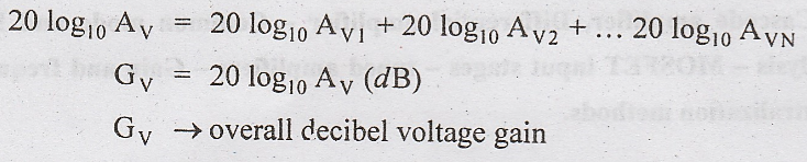 voltage gain of a multistage amplifier is equal to the product of the gains of
