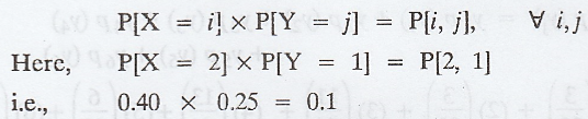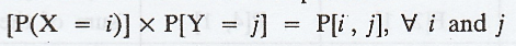 R.V's X and Y are said to be independent if f(x,y) = f(x). f(y) where f(x, y)