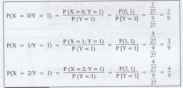 x +2y/27, x = 0, 1, 2 ; y = 0, 1, 2. Find the conditional distribution of Y