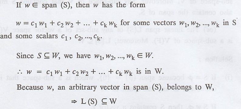 of a vector space V is a sub-space of V if and only if span (W) = W.