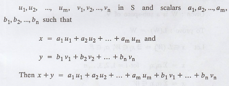 Let V be a vector space and Let S a non-empty sub-set of V. A vector v ε V is called a linear combination of vectors of S if there exist a finite number of vectors