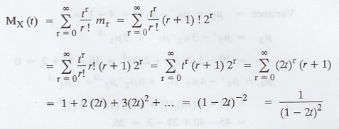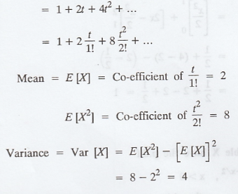 function MX(t) = 2/2-t determine the variance of X. [A.U M/J 2012]