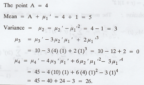 about X = 4 are 1, 4, 10 and 45 respectively. Show that the mean is 5, variance