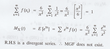 1. A random variable X may have no moment although its m.g.f exists. 2. A random variable X can have its moment generating function and some (or all) moments, yet the moment generating function does not generate the moments. 3. A random variable X can have all or some moments, but moment generating function do not exist except perhaps at one point.