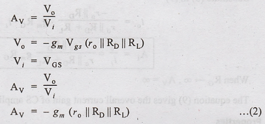 2.25 shows the small signal equivalent circuit for the common source MOSFET