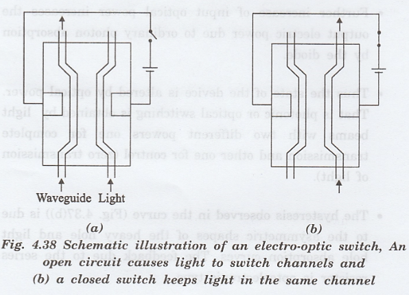 An example of an electro-optic switch based on NLO materials is shown in fig. 4.38. The switch is comprised of two parallel waveguides made of NLO materials.