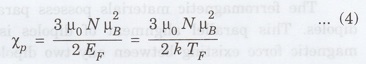 According to equation (3), χP, is essentially temperature independent. This is clear from the fact that temperature has a very small effect on the Fermi-Dirac distribution of the electrons (Fig. 2.27). Making use of the equations, we obtain