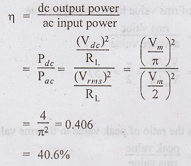 maximum efficiency of a half-wave rectifier is 40.6%.