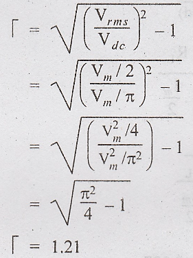 amount of ac present in the output is 121% of the de voltage.