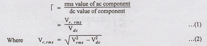ratio of rms value of ac component to the de component in the output is known