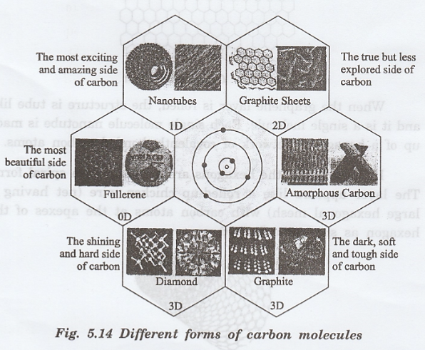 Pure carbon exists in four different crystalline forms namely Diamond, Graphite, Fullerenes and Nanotubes.