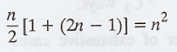 is (2n-1) + (2n-3) + ... + 5 + 3+1 which is an A.P. with common difference 2.